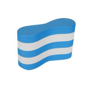 Blue and White youth sized pull buoy. Simply place the pull buoy between your thighs during swimming workouts and provide support to your body without kicking your legs. This allows the swimmer to focus on developing endurance and upper body strength.